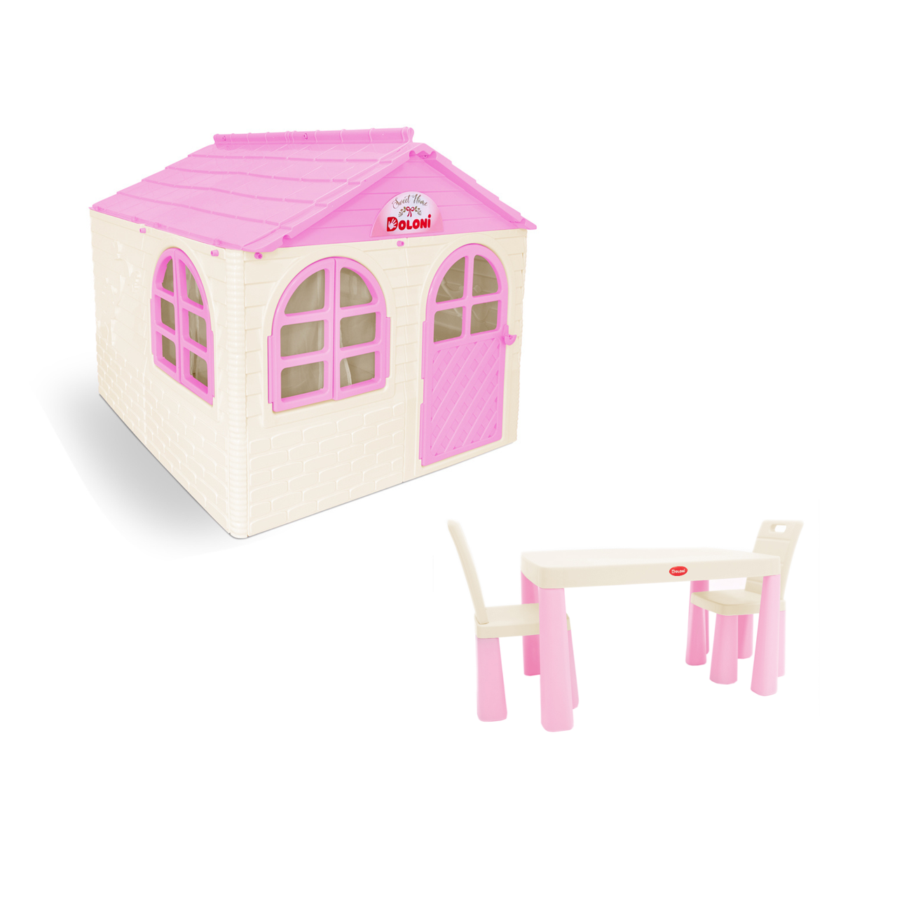 НАБІР Середній ігровий будиночок зі шторками і столик з двома стільчиками ТМ Doloni